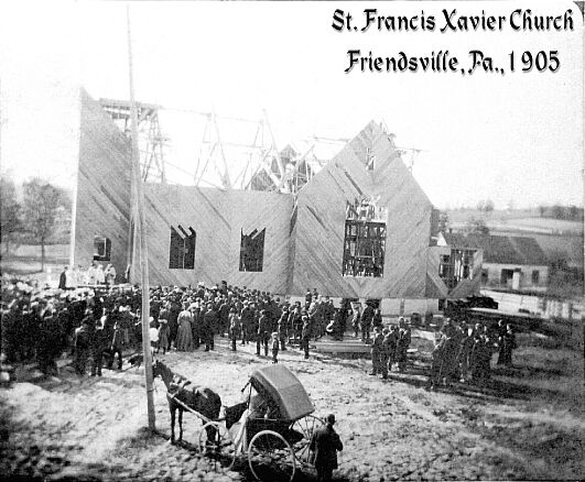 Francis Xavier Church - Friendsville, Pa. Being built, 1905